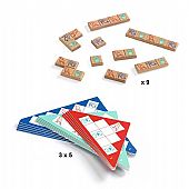 Περιλαμβάνει: 15 εικονογραφημένες κάρτες προκλήσεων 2 όψεων σε 3 διαφορετικά μεγέθη και 9 ξύλινα πλακίδια, κανόνες του παιχνιδιού σε 10 γλώσσες.
