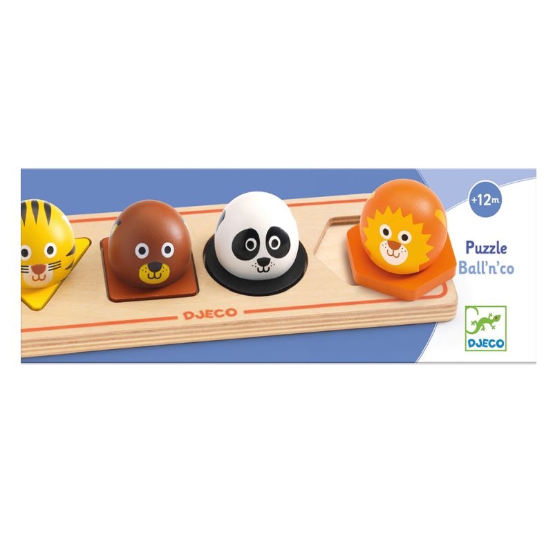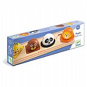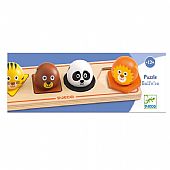 Ξύλινο παζλ της εταιρείας Djeco με θέμα τα ζώα της ζούγκλας, ειδικά σχεδιασμένο για μικρά χεράκια. Τα στρογγυλά κεφαλάκια των ζώων κάνουν τα κομμάτια εύκολα στο πιάσιμο, ενώ τα παιδιά μαθαίνουν να αναγνωρίζουν και να ταιριάζουν σχήματα και ζώα στη σωστή θέση πάνω στη βάση. Ένα χαρούμενο παιχνίδι που ενισχύει τη λεπτή κινητικότητα, τον οπτικοκινητικό συντονισμό και την αντίληψη σχημάτων.