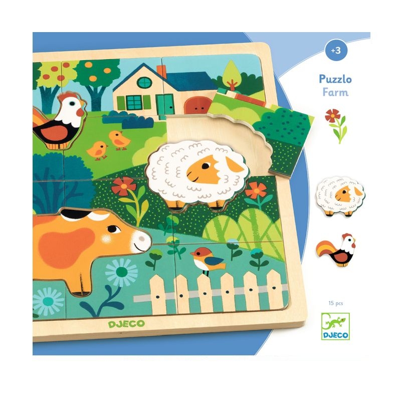 Ένα υπέροχο ξύλινο παζλ από την εταιρεία Djeco με θέμα τη φάρμα, ιδανικό για τα πρώτα βήματα του παιδιού στον κόσμο των παζλ! Πάνω στη ξύλινη βάση, τα παιδιά συνθέτουν την εικόνα των 12 κομματιών και ανακαλύπτουν τρία αγαπημένα ζωάκια — τον κόκορα, το πρόβατο και την αγελάδα. Τα κομμάτια εφαρμόζουν σταθερά μέσα στη βάση, ενώ τα τρία ζώα αποτελούνται από ενιαία κομμάτια, για να τοποθετούνται εύκολα και να προσφέρουν το αίσθημα επιτυχίας στο παιδί. Ένα παιχνίδι που ενισχύει τη λεπτή κινητικότητα, την παρατηρητικότητα και την αντίληψη σχήματος και χώρου, μέσα από χαρούμενο και δημιουργικό παιχνίδι.