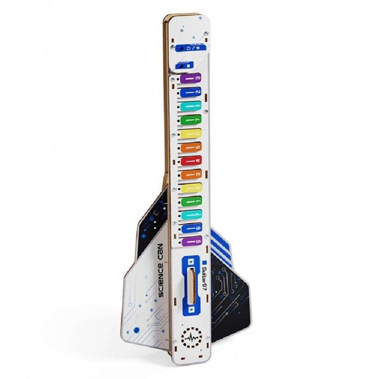 Τα παιδιά συναρμολογούν τη δική τους κιθάρα από ξύλο και ηλεκτρονικά εξαρτήματα, μαθαίνοντας μέσα από την πράξη. Με 5 διαφορετικούς ήχους οργάνων, φωτιζόμενα πλήκτρα και πολλές λειτουργίες παιχνιδιού, ενισχύουν το ρυθμό, τη μελωδία και τη μουσική τους διαίσθηση.