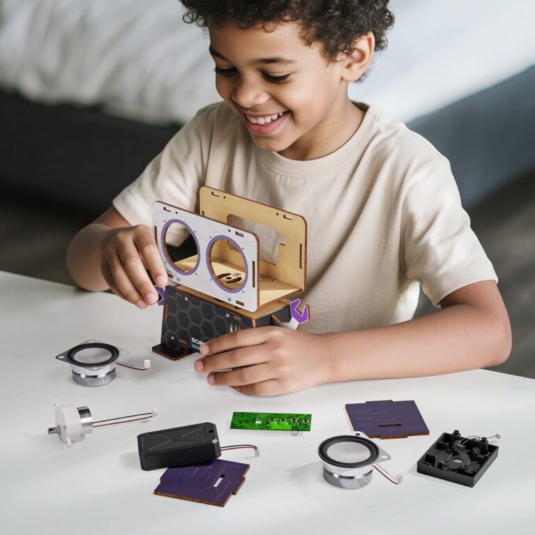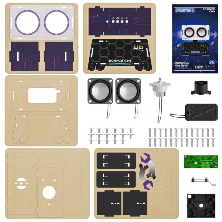 Το Soundbox Construction Kit δίνει τη δυνατότητα σε νέους δημιουργούς να εξερευνήσουν την τεχνολογία ενώ κατασκευάζουν το δικό τους ρομποτικό ηχείο Bluetooth. Με ξύλινα πάνελ κομμένα με λέιζερ, περιστρεφόμενη ρομποτική κεφαλή και ισχυρά ηχεία, αυτό το project συνδυάζει τη μάθηση, τη δημιουργικότητα και τη διασκέδαση σε ένα ολοκληρωμένο gadget. Κατάλληλο για παιδιά και νέους δημιουργούς που αγαπούν τη μουσική και την τεχνολογία.