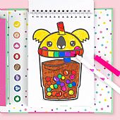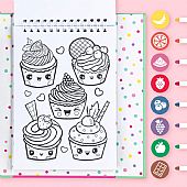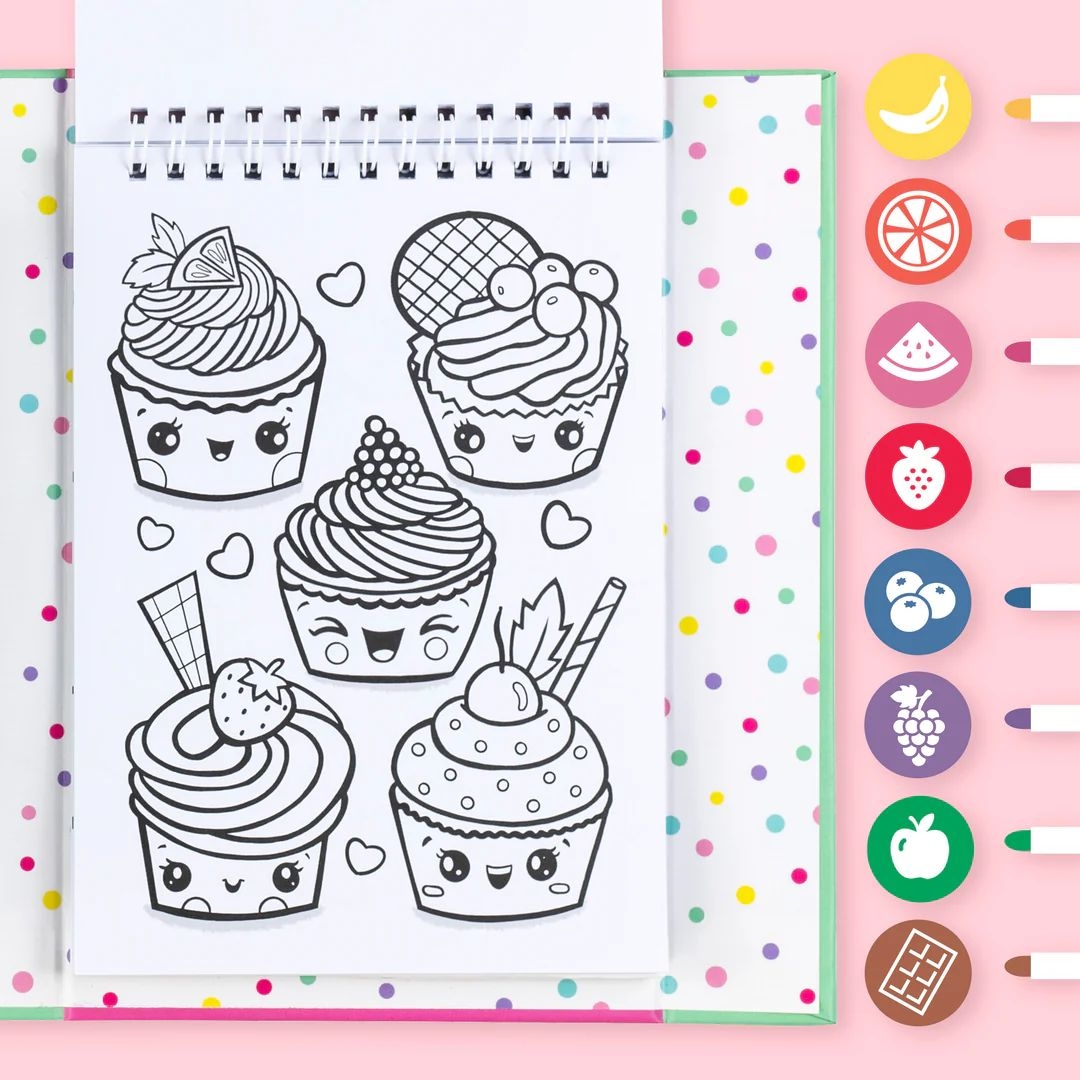 Περιλαμβάνει: 36 σελίδες ζωγραφικής με όμορφα σχέδια με φρούτα και ροφήματα, 8 αρωματικούς μαρκαδόροι και 5 φύλλα αυτοκόλλητων γεμάτα πολύχρωμα μοτίβα.