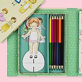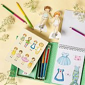 Κάθε σετ είναι γεμάτο με υπέροχα εικονογραφημένα ρούχα και αξεσουάρ, έτοιμα να διακοσμηθούν με αυτοκόλλητα και χρωματιστά μολύβια. Αυτό το έξυπνο δημιουργικό σετ περιλαμβάνει όλα όσα χρειάζεσαι για να «ζωντανέψεις» τη δική σου κούκλα!