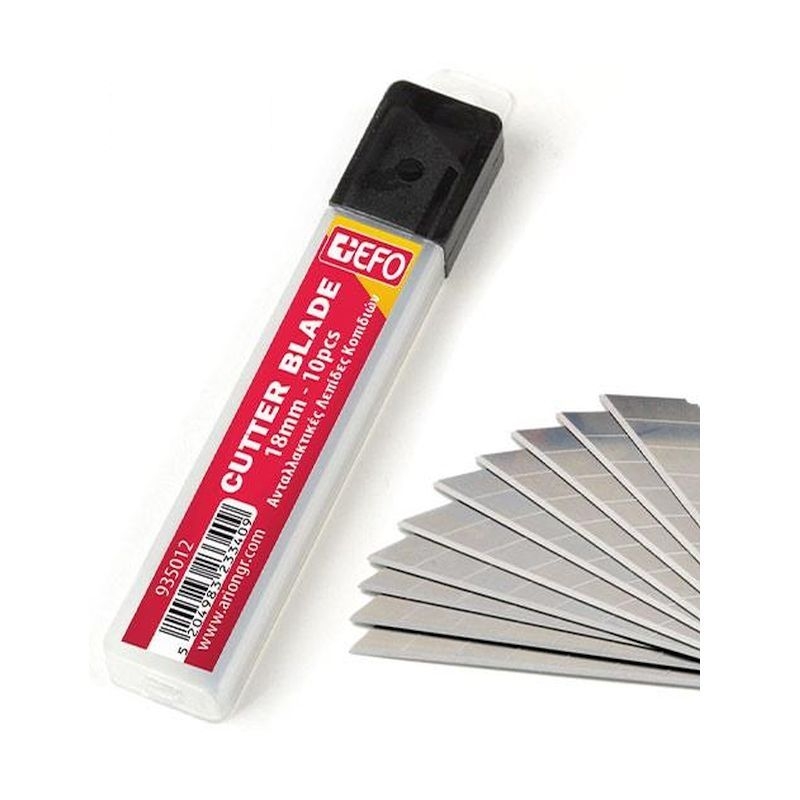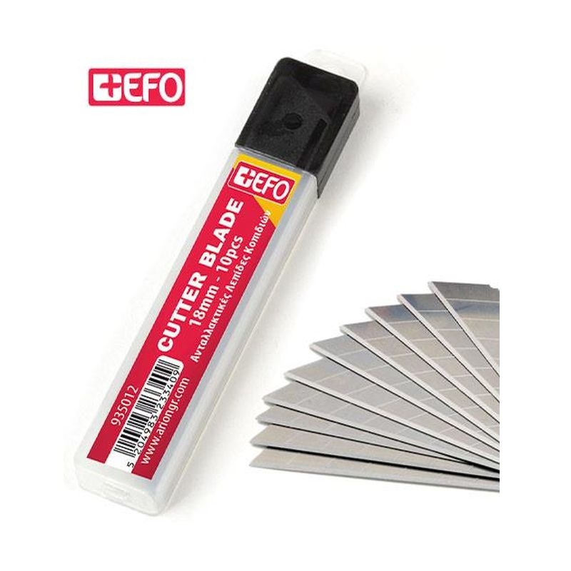 Οι λεπίδες κοπιδιού +Efo σε συσκευασία των 10 τεμαχίων είναι ανταλλακτικές λεπίδες για κοπίδι/χαρτοκόπτη με πλάτος 18 mm, σχεδιασμένες για γρήγορη και καθαρή κοπή σε χαρτόνι, χαρτί, πλαστικό και άλλα υλικά. Είναι πρακτική λύση για επαγγελματική ή οικιακή χρήση, καθώς όταν η άκρη φθαρεί μπορείς να αντικαταστήσεις τη λεπίδα εύκολα.
