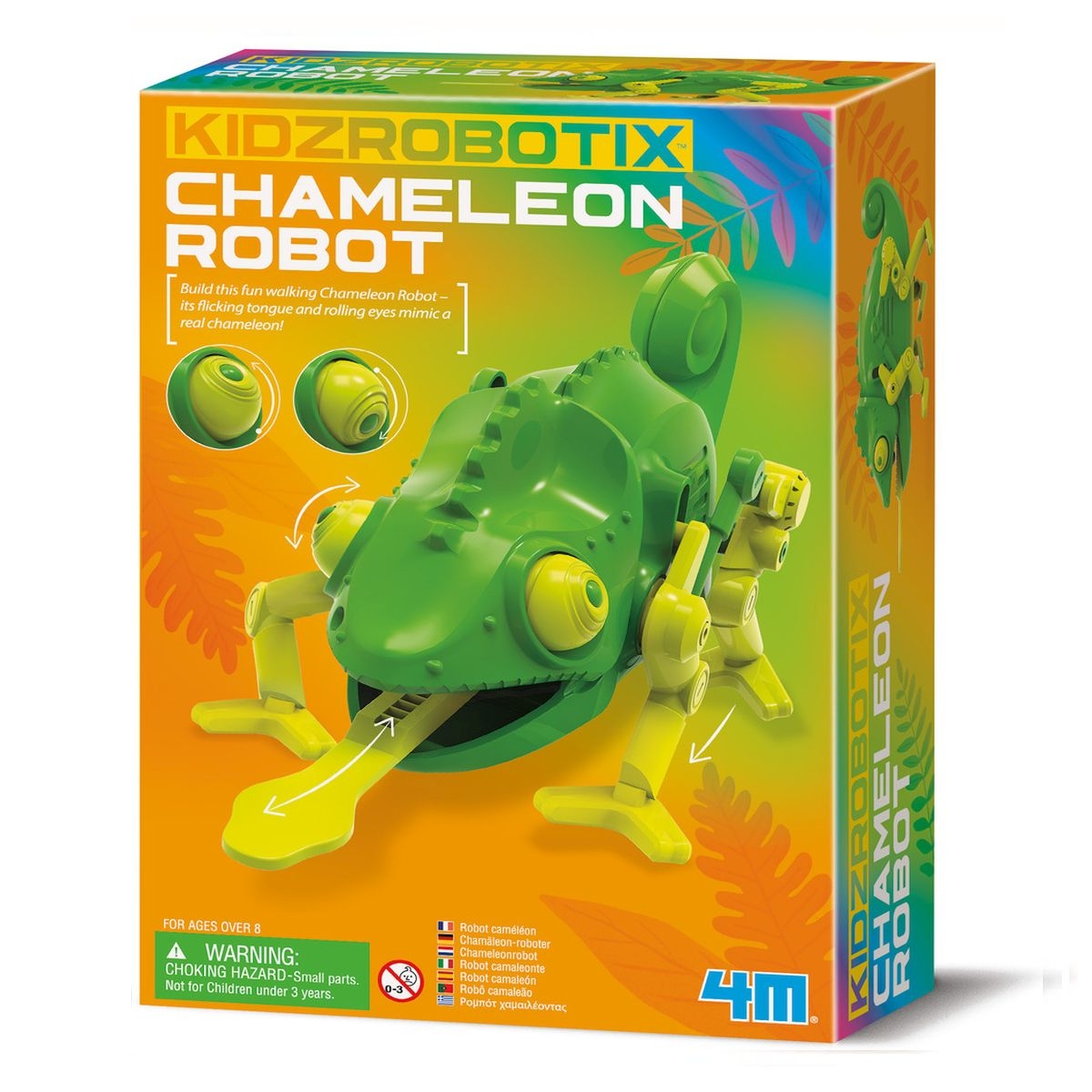 Φτιάξε το δικό σου Ρομπότ Χαμαιλέοντα και δες το να ζωντανεύει μπροστά στα μάτια σου! Με κάθε κίνηση, θα παρακολουθείς τη γλώσσα του να ξεδιπλώνεται, τα μάτια του να περιστρέφονται και τα πόδια του να κινούνται όπως ενός αληθινού χαμαιλέοντα. Ένα διασκεδαστικό και εκπαιδευτικό παιχνίδι που εξάπτει τη φαντασία και καλλιεργεί τις δεξιότητες μηχανικής των παιδιών.
