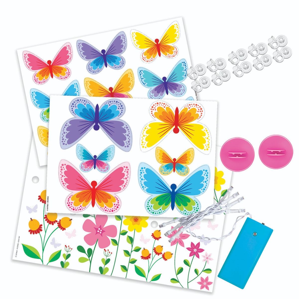 Περιλαμβάνει: 2 πεταλούδες πρότυπα, 1 ταμπλό, 1 γιρλάντα με 9 φωτάκια, 1 κάλυμμα θήκης μπαταρίας με βίδα, 9 αντάπτορες και πείροι, 2 βάσεις, αφρώδες υλικό που κολλάει, οδηγίες στα Ελληνικά.