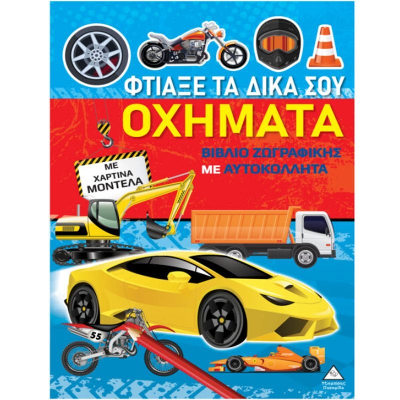 Βιβλίο ζωγραφικής με αυτοκόλλητα: Φτιάξε τα δικά σου Οχήματα