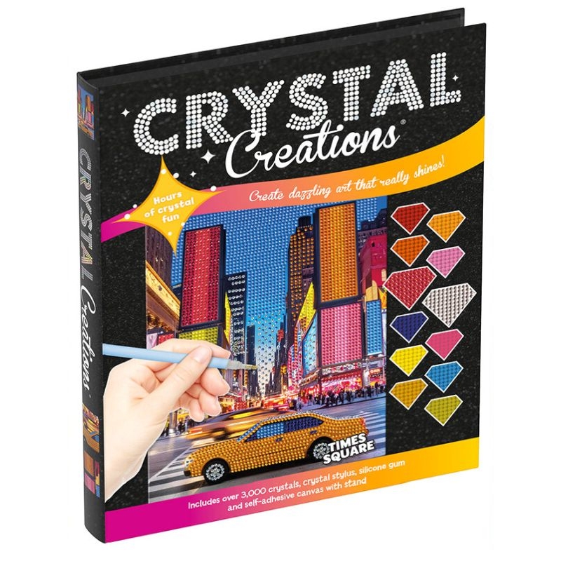 Η Crystal Creations είναι μια νέα τάση χειροτεχνίας, απλή αλλά εξαιρετικά εθιστική και εντυπωσιακή στο αποτέλεσμά της. Αφήστε τη δημιουργικότητά σας να ξεδιπλωθεί σε αυτό το λαμπερό σετ δημιουργίας με κρυστάλλους με θέμα την Times Square. Χρησιμοποιήστε το ειδικό στυλό και ακολουθήστε βήμα προς βήμα τις οδηγίες για να τοποθετήσετε στη σωστή θέση τους κρυστάλλους και να δημιουργήσετε τον δικό σας πολύχρωμο και λαμπερό καμβά!