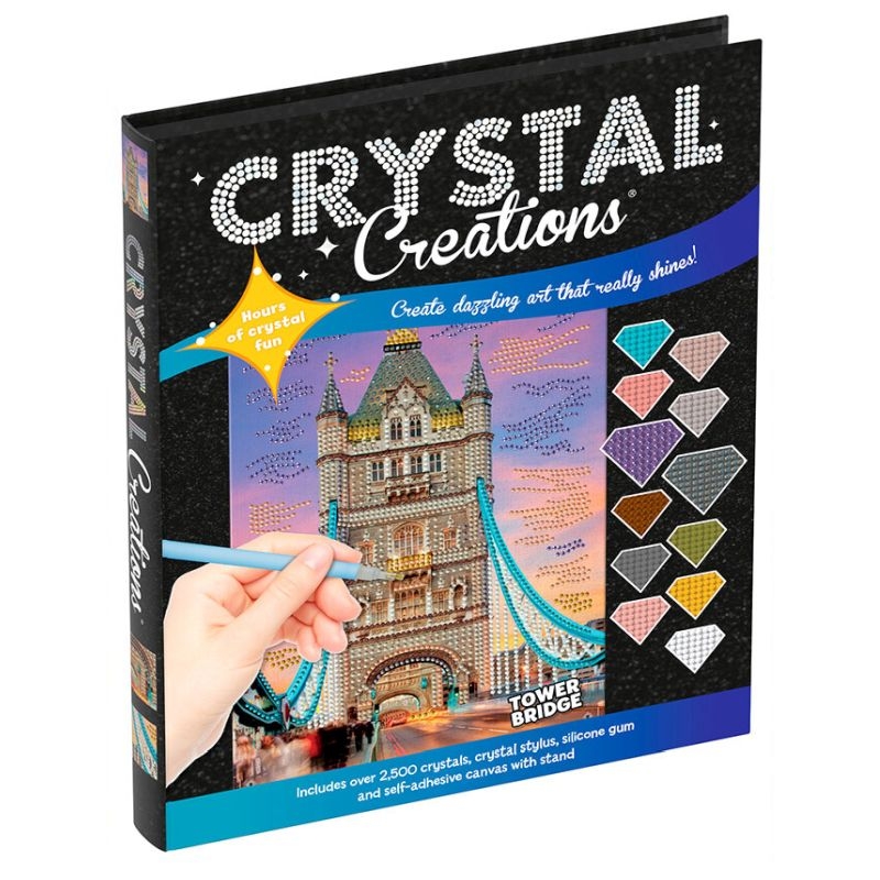 Η Crystal Creations είναι μια νέα τάση χειροτεχνίας, απλή αλλά εξαιρετικά εθιστική και εντυπωσιακή στο αποτέλεσμά της. Αφήστε τη δημιουργικότητά σας να ξεδιπλωθεί σε αυτό το λαμπερό σετ δημιουργίας με κρυστάλλους με θέμα την Tower Bridge. Χρησιμοποιήστε το ειδικό στυλό και ακολουθήστε βήμα προς βήμα τις οδηγίες για να τοποθετήσετε στη σωστή θέση τους κρυστάλλους και να δημιουργήσετε τον δικό σας πολύχρωμο και λαμπερό καμβά!