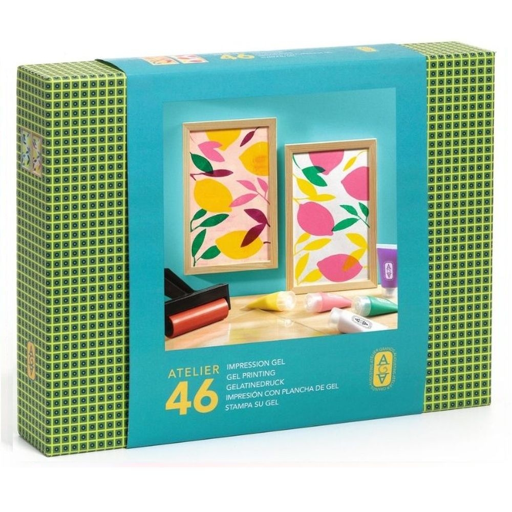 Δημιουργικό σετ Atelier 46 από την εταιρεία Djeco, που εισάγει μικρούς και μεγάλους στον μαγικό κόσμο του gel printing. Με αυτή την ιδιαίτερη τεχνική μεταφοράς εικόνας πάνω σε χαρτί, μπορείτε να πειραματιστείτε με στένσιλ, αποτυπώματα φύλλων, διαφάνειες και χρώματα, δημιουργώντας κάθε φορά ένα μοναδικό έργο τέχνης. Η πλάκα gel πλένεται και χρησιμοποιείται ξανά και ξανά, προσφέροντας ατελείωτες ώρες δημιουργίας. Μέσα από ένα αναλυτικό βίντεο με οδηγίες, μπορείτε να μάθετε εύκολα τα βασικά βήματα, ακόμα κι αν δοκιμάζετε για πρώτη φορά αυτή την τεχνική. Μια ήρεμη, ευχάριστη δραστηριότητα που θα απολαύσετε στο δικό σας ρυθμό, στο σπίτι. Όλα τα υλικά αποθηκεύονται σε ένα καλαίσθητο κουτί, το οποίο μπορεί να χρησιμοποιηθεί ξανά για αποθήκευση ή ως προσωπικό «θησαυροφυλάκιο» δημιουργίας.