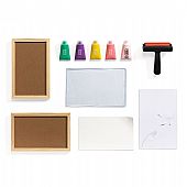 To σετ περιλαμβάνει: Ρολό εφαρμογής, χρώματα, χαρτιά, στένσιλ και δύο ξύλινα κάδρα για να παρουσιάσετε τις δημιουργίες σας.