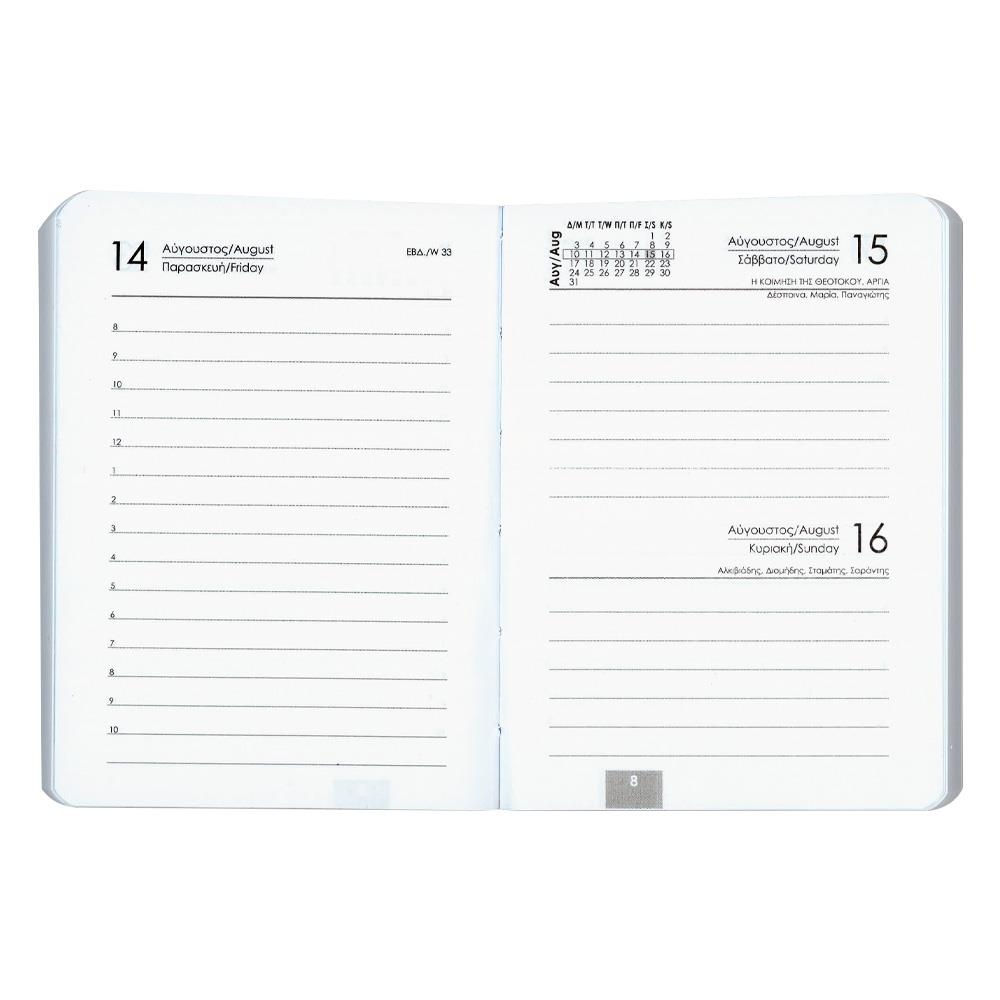 Το Next ημερολόγιο ημερήσιο μίνι flexi με εύκαμπτο velvet πυρογραφικό εξώφυλλο από eco leather αποτελεί την πιο πρακτική και κομψή επιλογή για την καθημερινή οργάνωση. Πρόκειται για το μικρότερο ημερήσιο ημερολόγιο στην ελληνική αγορά, σε διαστάσεις 8x12 εκ., σχεδιασμένο ώστε να χωράει άνετα στην τσέπη αλλά και στη μικρότερη γυναικεία τσάντα. Ο ευέλικτος χαρακτήρας του, σε συνδυασμό με την απαλή velvet υφή και τη διακριτική πυρογραφική αισθητική, το καθιστούν ιδανικό για όσους θέλουν να έχουν πάντα μαζί τους το ημερήσιο πρόγραμμά τους χωρίς συμβιβασμούς σε στυλ και ποιότητα.