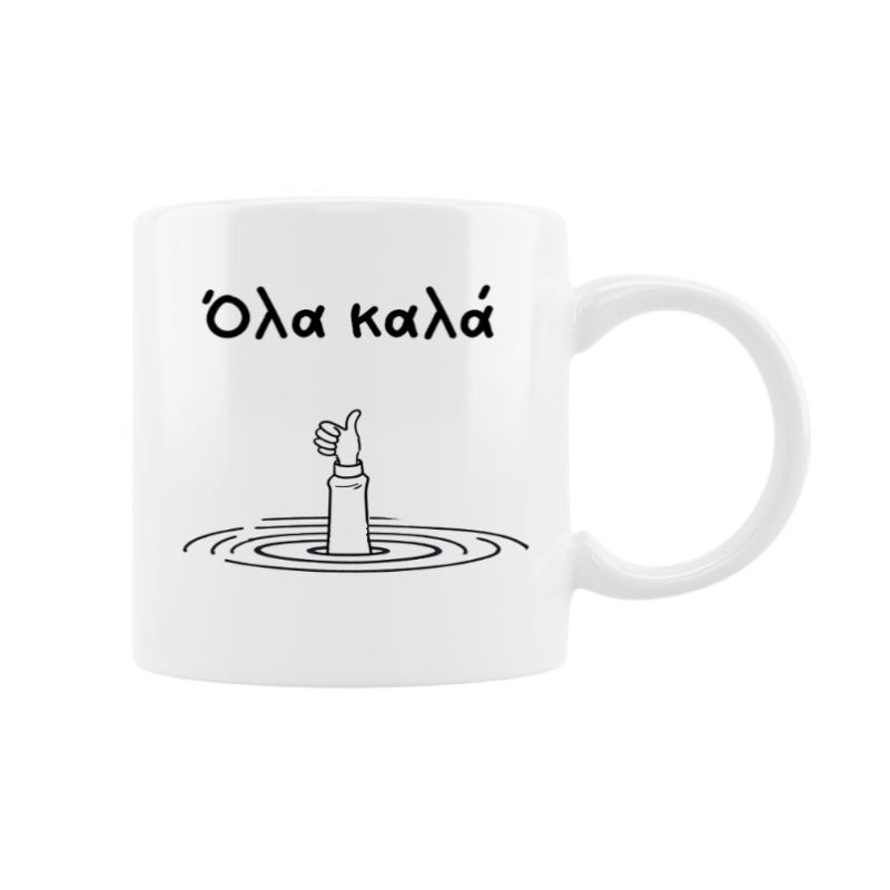 Πρωτότυπη και χιουμοριστική κούπα για όσους/ες διακρίνονται για την ψυχραιμία τους στα δύσκολα. Όχι, όχι, αλήθεια. Όλα καλά. Μπορεί να έρχεται το τέλος του κόσμου, να συμβαίνουν όλα τα δεινά μαζί εσύ όμως παραμένεις ψύχραιμη/ος και αισιόδοξη/ος. Αυτή είναι μια ιδιαίτερη κούπα για να σου δίνει δύναμη να αντιμετωπίσεις κάθε δυσκολία, σε κάθε πρωινό ξύπνημα.