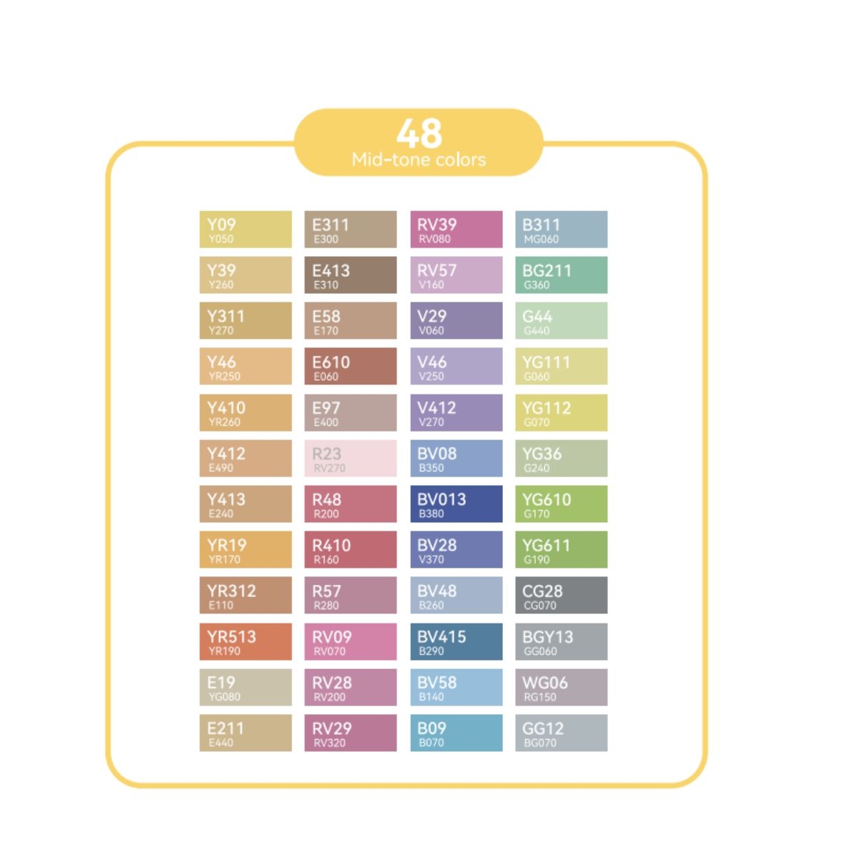 Art Markers: Σετ Μαρκαδόρων Honolulu Alcohol - Mid Tones Brush & Chisel (48 Χρωμάτων+1 Blender) - Ohuhu