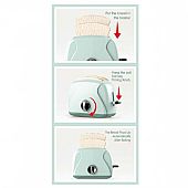 Η τοστιέρα προσφέρει ρεαλιστική εμπειρία μαγειρικής με δράση και ήχο: ο μοχλός ανεβαίνει αργά και, μόλις το τοστ είναι έτοιμο, ακούγεται ένα διασκεδαστικό “ding”!