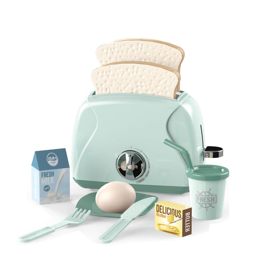 Περιλαμβάνει: Τοστιέρα, 2 φέτες ψωμί, αυγό, πιάτο, κουτάλι, πιρούνι, γαλατάκι και άλλα αξεσουάρ.