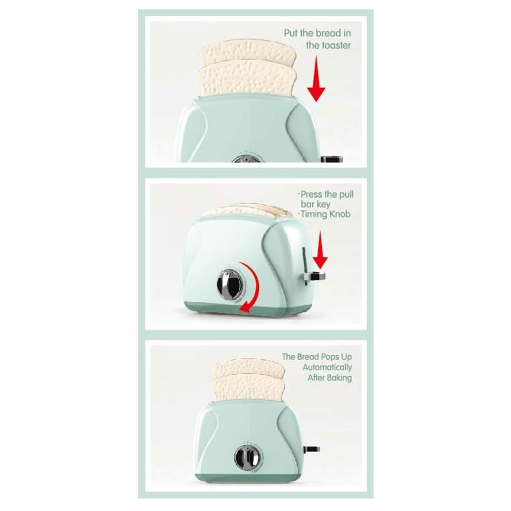 Η τοστιέρα προσφέρει ρεαλιστική εμπειρία μαγειρικής με δράση και ήχο: ο μοχλός ανεβαίνει αργά και, μόλις το τοστ είναι έτοιμο, ακούγεται ένα διασκεδαστικό “ding”!