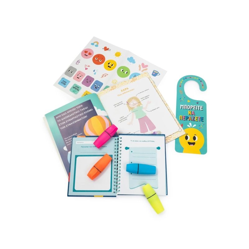 Περιλαμβάνονται: Εικονογραφημένο βιβλίο 32 σελίδων, ημερολόγιο, ταμπελάκι «Μην ενοχλείτε», 4 μαρκαδόροι υπογράμμισης και περισσότερα από 30 αυτοκόλλητα.