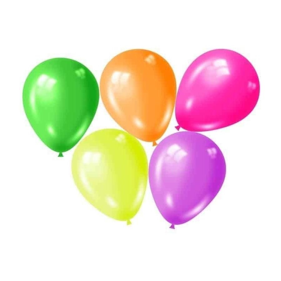 Σετ 10 πολύχρωμων φωσφοριζέ μπαλονιών ιδανικά για αποκριάτικα πάρτι, παιδικές γιορτές, εκδηλώσεις και κάθε είδους εορταστική διακόσμηση. Με διάμετρο 30 εκ., προσφέρουν έντονα χρώματα και εντυπωσιακό αποτέλεσμα, είτε χρησιμοποιηθούν μεμονωμένα είτε σε συνθέσεις.