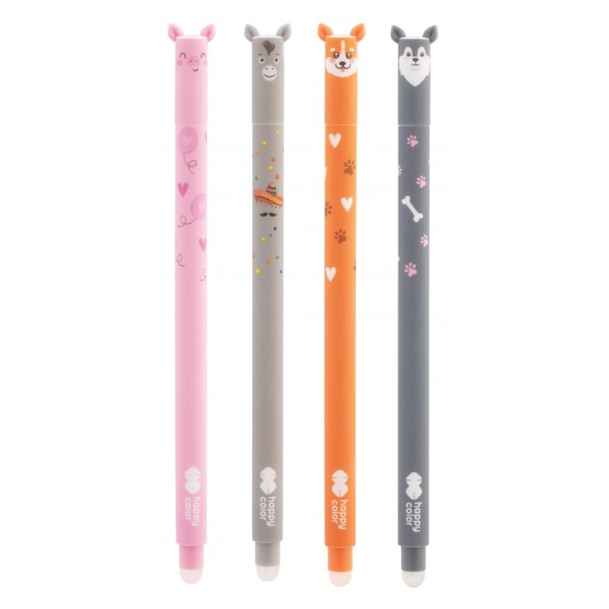 Ένα ιδιαίτερο στυλό της εταιρίας Happy Color σε 4 όμορφα σχέδια! Το ειδικό μελάνι gel είναι ευαίσθητο στην θερμότητα, ώστε να μπορείτε να σβήνετε τα λάθη σας τρίβοντας τη με την ειδική σβήστρα στο καπάκι! Η σβήστρα δε φθείρεται όπως οι συνηθισμένες σβήστρες! Με λαβή σιλικόνης για άνετο και εργονομικό κράτημα.