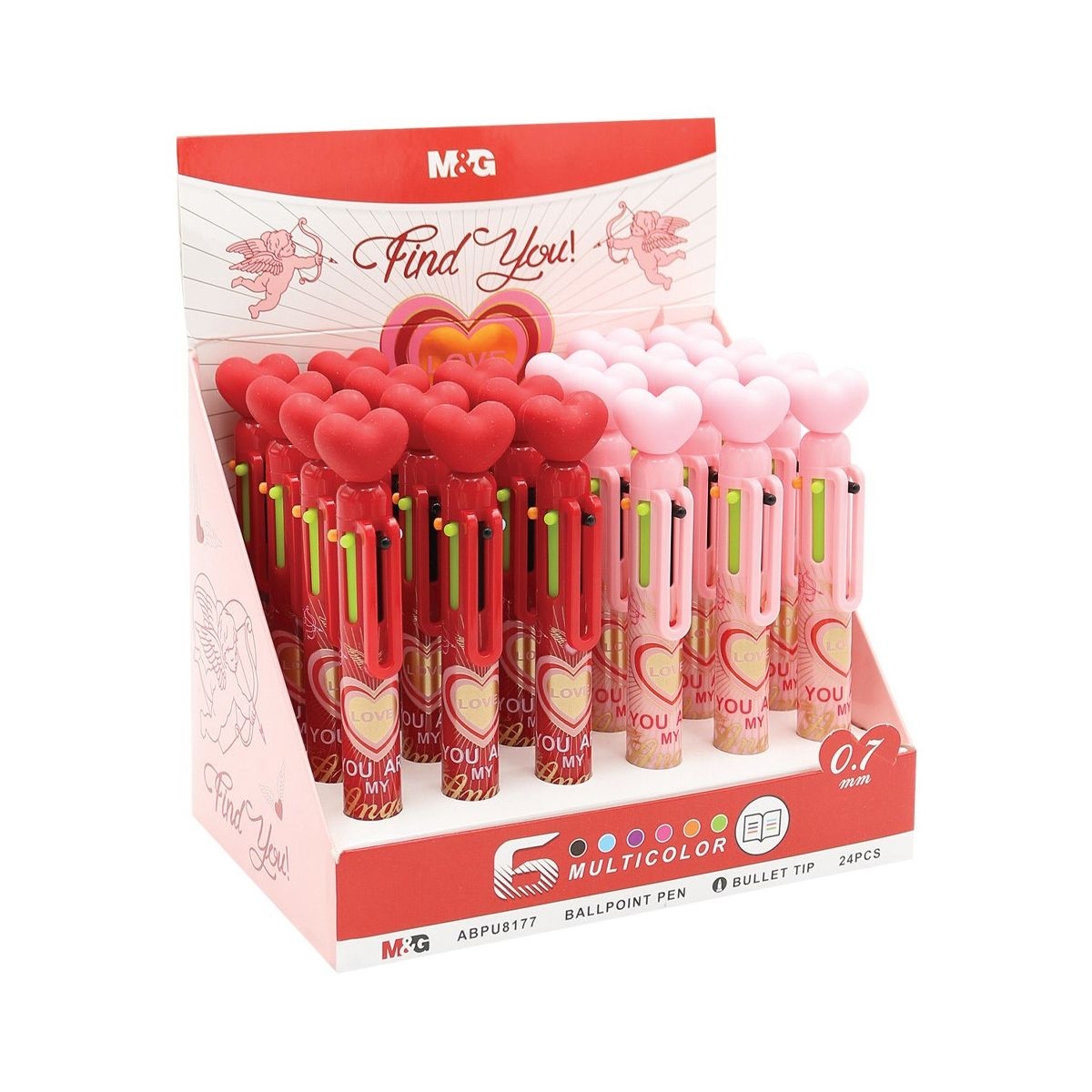 Πολύχρωμο στυλό ballpoint της M&G LOVE “Find You”, ιδανικό για όσους θέλουν πρακτικότητα και ξεχωριστό design. Διαθέτει 6 διαφορετικά χρώματα μελανιού σε ένα στυλό και διακοσμητικό λαστιχένιο καρδούλα στο επάνω μέρος, που το καθιστά ιδανικό και ως δώρο.
