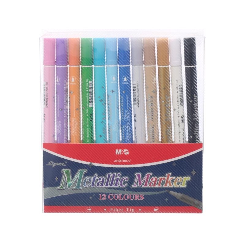 Αναδείξτε τη δημιουργικότητά σας με τους μαρκαδόρους M&G Metallic! Κάθε σετ περιλαμβάνει 12 μεταλλικά χρώματα που προσφέρουν λαμπερά, έντονα σχέδια και προσθέτουν μία ιδιαίτερη πινελιά στα έργα σας. Με τους μαρκαδόρους αυτούς, κάθε έργο γίνεται πιο ζωντανό και λαμπερό, ενώ η διπλή μύτη προσφέρει απόλυτο έλεγχο στις λεπτομέρειες.