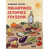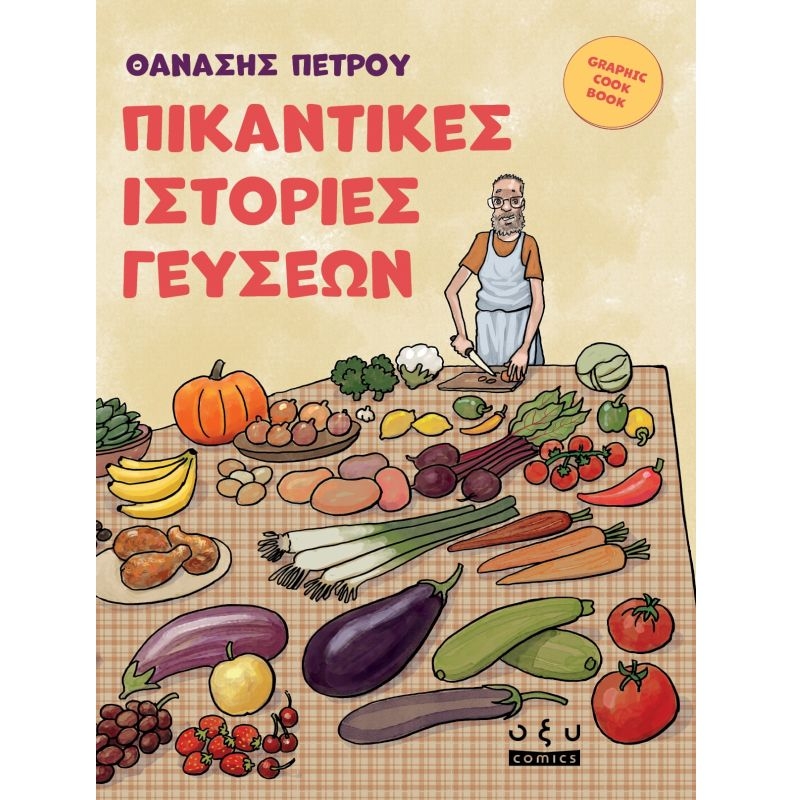 Ο Θανάσης Πέτρου, με το χαρακτηριστικό του ύφος και το αιχμηρό του χιούμορ, φτιάχνει ένα γευστικό ταξίδι μέσα από τις πρώτες ύλες της καθημερινότητας, από το αλάτι και το πιπέρι μέχρι τα θαλασσινά, τα όσπρια και τα γλυκά. Κάθε σελίδα είναι ένα μικρό σκίτσο ζωής, μια συνταγή που δεν χρειάζεται ζύγισμα, αλλά συναίσθημα, μνήμη και φαντασία. Στις σελίδες αυτού του βιβλίου η κουζίνα μετατρέπεται σε σκηνή. Οι γεύσεις αποκτούν φωνή, οι μυρωδιές στήνουν διάλογο με την ιστορία, και το βλέμμα του δημιουργού μάς θυμίζει ότι η τροφή δεν είναι απλώς ανάγκη, αλλά πολιτισμός, ποίηση και αφήγηση. Ένα πρωτότυπο graphic cookbook που συνδυάζει τέχνη, χιούμορ και… μπουκιές. Μια εικονογραφημένη ωδή στις μικρές απολαύσεις της καθημερινότητας, εκεί όπου η μαγειρική συναντά τη μνήμη και η τροφή το πιάτο της!