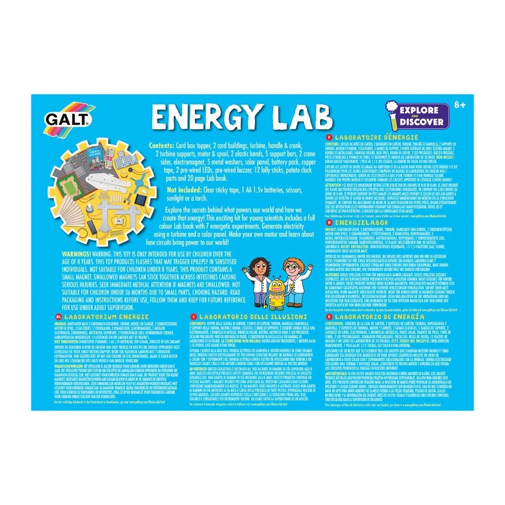 Με το «Energy Lab», οι μικροί επιστήμονες μπορούν να εξερευνήσουν τα μυστικά του συναρπαστικού κόσμου της ενέργειας που κινεί τα πάντα! Στη συσκευασία περιλαμβάνονται 7 διασκεδαστικά πειράματα με τα οποία τα παιδιά θα μπορέσουν να παράξουν ηλεκτρική ενέργεια χρησιμοποιώντας μια τουρμπίνα και ένα ηλιακό πάνελ. Θα φτιάξουν τον δικό τους κινητήρα και θα μάθουν πώς τα κυκλώματα μεταφέρουν την ενέργεια που είναι απαραίτητη για να λειτουργήσει ο κόσμος γύρω τους!