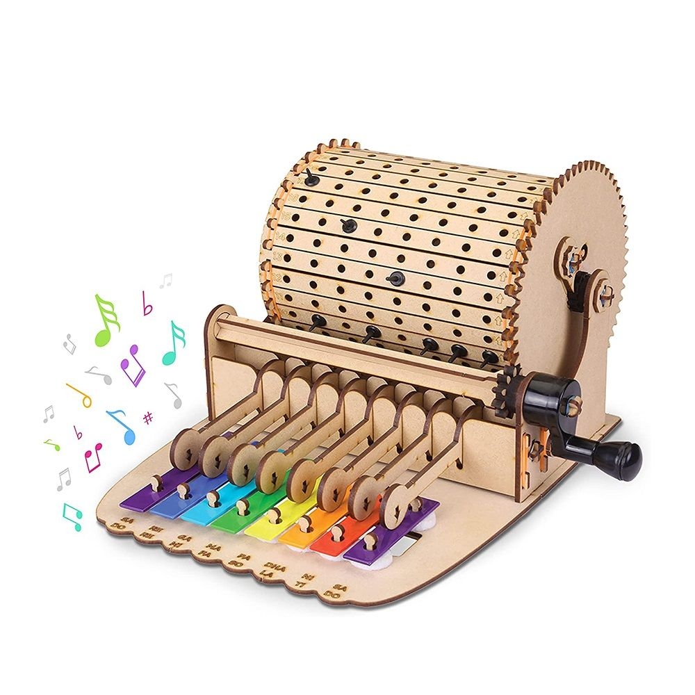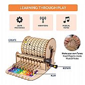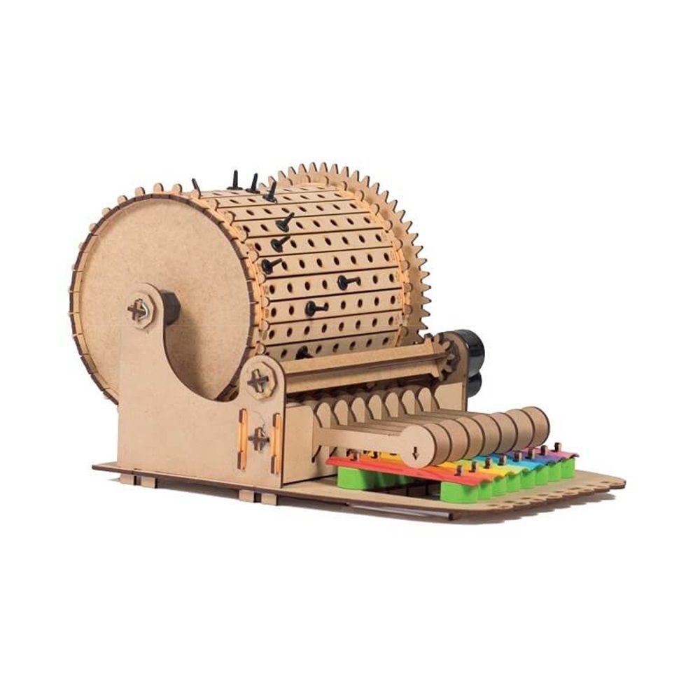 Περιλαμβάνει: 7 υψηλής ποιότητας ξύλινες καρτέλες με αποσπώμενα κομμάτια για τη συναρμολόγηση, 8 μεταλλικές μουσικές πλάκες (νότες), 117 μικρά εξαρτήματα, 6 φύλλα μουσικής που περιλαμβάνονται στο εγχειρίδιο και 1 εικονογραφημένο εγχειρίδιο οδηγιών με αναλυτικά βήματα κατασκευής.