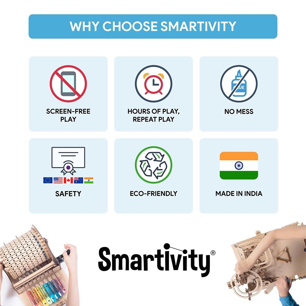 Με αυτό το DIY σετ της εταιρείας Smartivity, τα παιδιά μπορούν να κατασκευάσουν το δικό τους πλήρως λειτουργικό μεταλλόφωνο – μουσικό μηχανισμό για τη σύνθεση μελωδιών! Το σετ περιλαμβάνει όλα τα απαραίτητα εξαρτήματα και αναλυτικές, εικονογραφημένες οδηγίες βήμα-βήμα για την κατασκευή του μηχανισμού. Καθώς τα παιδιά κατασκευάζουν το μεταλλόφωνο και το χρησιμοποιούν για να δημιουργήσουν νέες μελωδίες, κατανοούν βασικές αρχές της μουσικής σύνθεσης, της αρμονίας και του ρυθμού, ενισχύοντας την περιέργεια και τη δημιουργικότητά τους. Με τη χρήση των ειδικών καβιλιών, μπορούν να πειραματιστούν με διαφορετικούς συνδυασμούς νοτών και να συνθέσουν τις δικές τους μουσικές ιδέες. Η συσκευασία περιλαμβάνει επίσης οδηγίες για τη σύνθεση δύο απλών μελωδιών, βοηθώντας τα παιδιά να ξεκινήσουν εύκολα την εξερεύνηση του ήχου. Χρησιμοποιώντας ένα ειδικά σχεδιασμένο απλό σύστημα δόμησης, τα παιδιά θα κατασκευάσουν το μουσικό μηχανισμό και θα εξερευνήσουν τον τρόπο λειτουργίας του, ανακαλύπτοντας παράλληλα βασικούς νόμους της μηχανικής. Μέσα από αυτή τη διαδικασία βιώνουν τη χαρά της δημιουργίας – τόσο επιστημονικής όσο και καλλιτεχνικής – και κατανοούν τη σημασία της λογικής αλληλουχίας των βημάτων. Μπορούν να ασχοληθούν ατομικά ή να κατασκευάσουν το μεταλλόφωνο συνεργατικά.