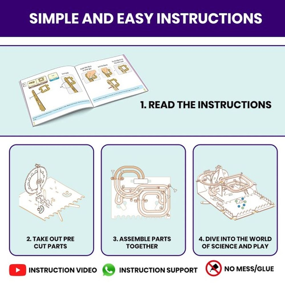 Με αυτό το DIY σετ της εταιρείας Smartivity, τα παιδιά μπορούν να κατασκευάσουν το δικό τους πλήρως λειτουργικό τόμπογκαν! Ακολουθώντας τις αναλυτικές, εικονογραφημένες οδηγίες βήμα-βήμα, δημιουργούν «από το μηδέν» ένα ευρηματικό παιχνίδι που μπορεί να παιχτεί τόσο ως κλασική κατρακύλα μπίλιας όσο και σε συνδυασμό με mini μπιλιάρδο. Κατά τη διάρκεια της κατασκευής και του παιχνιδιού, τα παιδιά πειραματίζονται και κατανοούν βασικές έννοιες της φυσικής, όπως η βαρύτητα, η ορμή, η φυγόκεντρος δύναμη και η κίνηση. Μπορούν να τροποποιούν τις διαδρομές της μπίλιας και να εξερευνούν διαφορετικούς τρόπους λειτουργίας του μηχανισμού, ενισχύοντας τη λογική σκέψη και την παρατηρητικότητα. Το παιχνίδι μπορεί να κατασκευαστεί και να παιχτεί είτε ατομικά είτε συνεργατικά. Χρησιμοποιώντας ένα ειδικά σχεδιασμένο απλό σύστημα δόμησης, τα παιδιά κατασκευάζουν το παιχνίδι και εξερευνούν τον τρόπο λειτουργίας του, βιώνοντας τη χαρά της δημιουργίας (επιστημονικής και δημιουργικής) και τη σημασία της σωστής ακολουθίας των βημάτων.