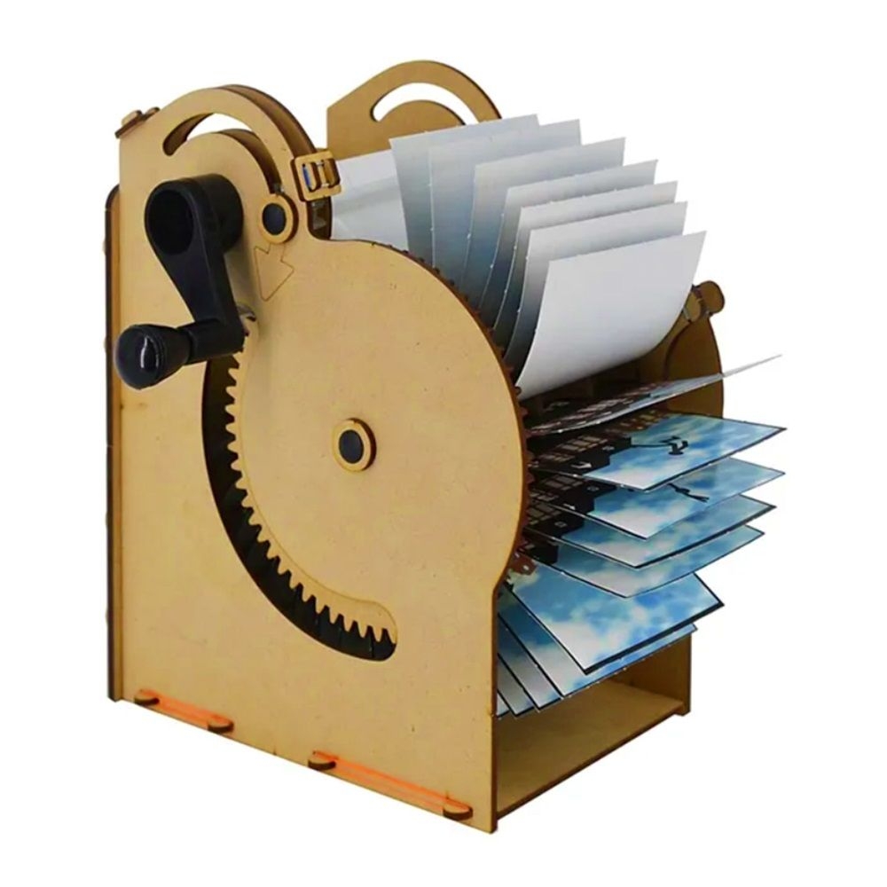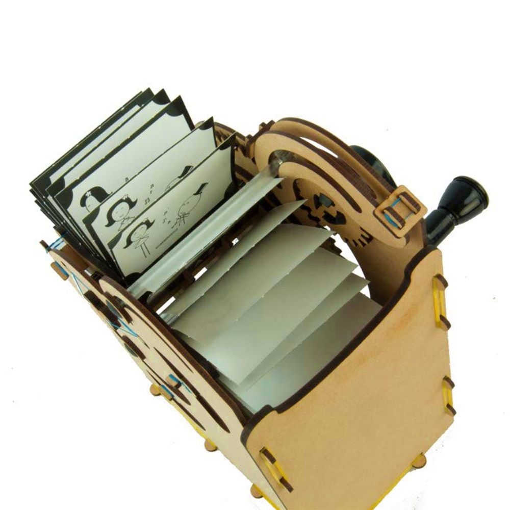 Περιλαμβάνει: 4 υψηλής ποιότητας ξύλινες καρτέλες με αποσπώμενα κομμάτια για τη συναρμολόγηση, 2 σετ εικονογραφημένων διαφανειών για κινούμενα σχέδια (animation frames), 34 μικρά εξαρτήματα, 6 λευκές διαφάνειες για να δημιουργήσουν τα δικά τους κινούμενα σχέδια και 1 πλούσιο εικονογραφημένο εγχειρίδιο οδηγιών βήμα-βήμα.