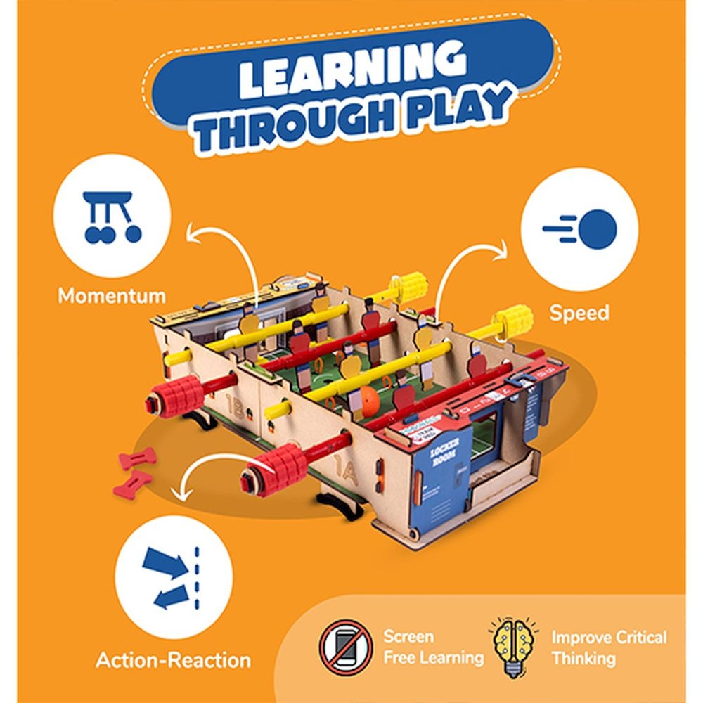 Κατασκευάστε το δικό σας ποδοσφαιράκι με αυτό το D.I.Y. σετ της εταιρείας Smartivity. Χρησιμοποιώντας ένα ειδικά σχεδιασμένο απλό σύστημα συναρμολόγησης, τα παιδιά θα κατασκευάσουν ένα αγαπημένο κλασσικό επιτραπέζιο ποδοσφαιράκι και θα εξερευνήσουν τον τρόπο λειτουργίας του, βιώνοντας τη χαρά της δημιουργίας, αλλά και την αναγκαιότητα του κάθε επόμενου βήματος, το οποίο θα πρέπει να στηρίξουν λογικά. Μέσα από την ενασχόλησή τους με αυτό το STEAM παιχνίδι, τα παιδιά θα ανακαλύψουν τον τρίτο νόμο του Νεύτωνα σχετικά με τη δράση – αντίδραση και όσους νόμους διέπουν την ορμή και την ταχύτητα. Μπορούν να ασχοληθούν ατομικά ή να κατασκευάσουν το παιχνίδι συνεργατικά. Τα παιχνίδια Smartivity αφαιρούν τους περιορισμούς και τους κανόνες και προσθέτουν κριτική σκέψη και περιέργεια! Είναι φιλικά προς το περιβάλλον, πληρούν τα μέγιστα πρότυπα ασφαλείας, προάγουν την τάξη και το παιχνίδι μακριά από οθόνες, ενώ είναι κατά της διάκρισης των φύλων. Συμβάλουν στην ανάπτυξη της δημιουργικότητας, της επίλυσης προβλημάτων, της συνεργασίας, των μηχανικών δεξιοτήτων, των οπτικοκινητικών δεξιοτήτων, της λεπτής κινητικότητας και της φαντασίας.
