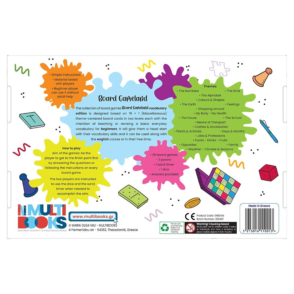 Το επιτραπέζιο παιχνίδι εκμάθησης λεξιλογίου είναι ιδανικό για μαθητές που αγαπούν τη μάθηση μέσα από το παιχνίδι. Περιλαμβάνει 39 επιτραπέζια παιχνίδια με θεματικό λεξιλόγιο και προσφέρει έναν διασκεδαστικό τρόπο εκμάθησης και επανάληψης της αγγλικής γλώσσας.