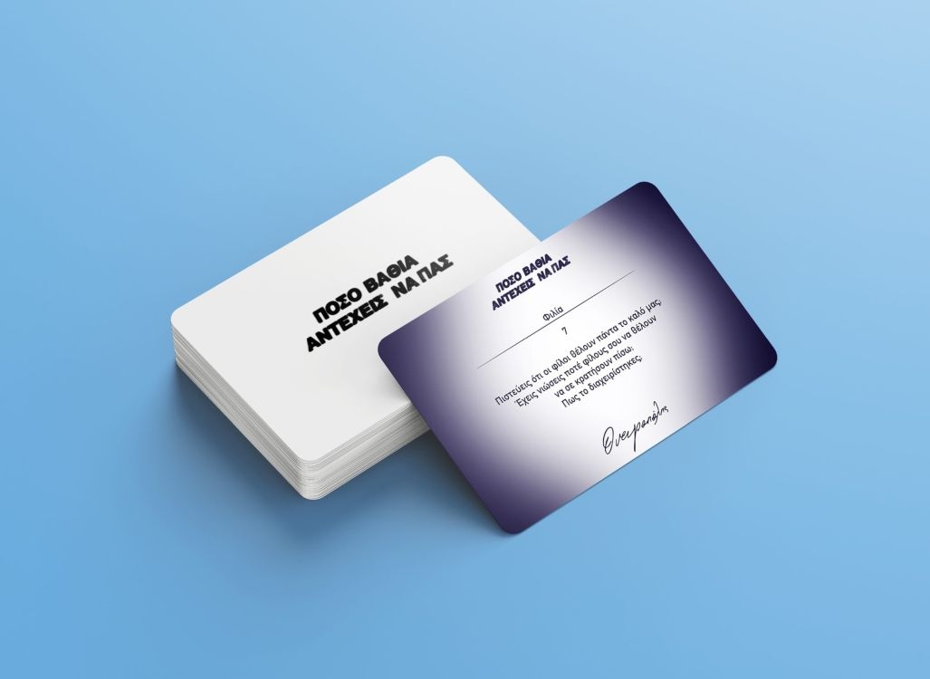 Περιλαμβάνονται: 80 κάρτες, 10 κατηγορίες και 7 επίπεδα βάθους.