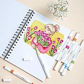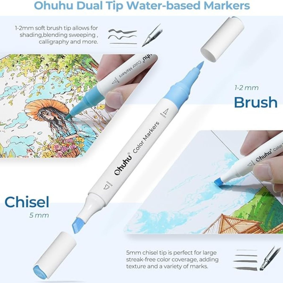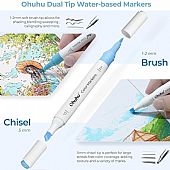 Art Markers: Σετ Μαρκαδόρων Water Based - Basic Tones Brush & Chisel (64 Χρωμάτων+1 Blender) - Ohuhu