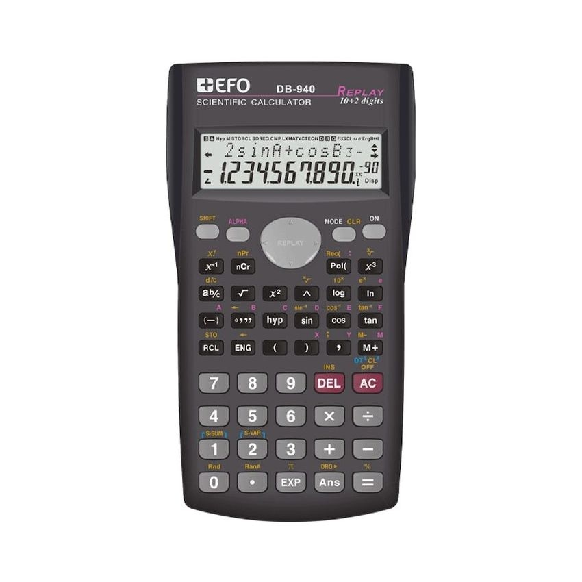 Η EFO DB-940 είναι μια αξιόπιστη επιστημονική αριθμομηχανή με 240 λειτουργίες, ιδανική για μαθητές, φοιτητές και επαγγελματίες. Διαθέτει ευκρινή LED οθόνη, πλήθος λειτουργιών (αλγεβρικές, στατιστικής, τριγωνομετρικές), καθώς και ανθεκτικό σχεδιασμό με προστατευτικό κάλυμμα για άνετη και εύκολη χρήση καθημερινά.