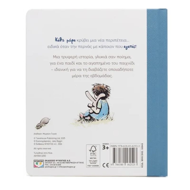 Κάθε μέρα κρύβει μια νέα περιπέτεια… ειδικά όταν την περνάς με κάποιον που αγαπάς! Μια τρυφερή ιστορία, γλυκιά σαν ποίημα, για ένα παιδί και το αγαπημένο του παιχνίδι ιδανική για να τη διαβάζετε οποιαδήποτε μέρα της εβδομάδας.