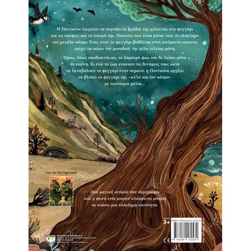 Η Ποντικίνα λατρεύει να περνάει τα βράδια της μιλώντας στο φεγγάρι για τις σκέψεις και τα όνειρά της. Πιστεύει πως είναι μόνοι τους σε ολόκληρο τον μεγάλο κόσμο. Έτσι, όταν το φεγγάρι βυθίζεται στον απέραντο ωκεανό, τρέχει να σώσει τον μοναδικό της φίλο τελείως μόνη. Όμως, όπως αποδεικνύεται, το λαμπερό φως του δε λείπει μόνο σε εκείνη. Κι ενώ τα ζώα ενώνουν τις δυνάμεις τους ώστε να ξαναβάλουν το φεγγάρι στον ουρανό, η Ποντικίνα αρχίζει να βλέπει το φεγγάρι της αλλά και τον κόσμο– με καινούρια μάτια…Μια μαγική ιστορία που περιγράφει πώς η φωνή ενός μικρού πλάσματος μπορεί να ενώσει μια ολόκληρη κοινότητα.