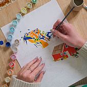 Πώς να ζωγραφίσετε: Η αφίσα είναι χωρισμένη σε αριθμημένα τμήματα. Κάθε αριθμός αντιστοιχεί σε ένα συγκεκριμένο χρώμα απλά διαλέξτε τον σωστό αριθμημένο βαζάκι, πάρτε ένα από τα δύο πινέλα και... ξεκινήστε! Με τη βοήθεια των αυτοκόλλητων αριθμών που περιλαμβάνονται, μπορείτε να οργανώσετε εύκολα τα χρώματά σας και να αποφύγετε τυχόν μπερδέματα.