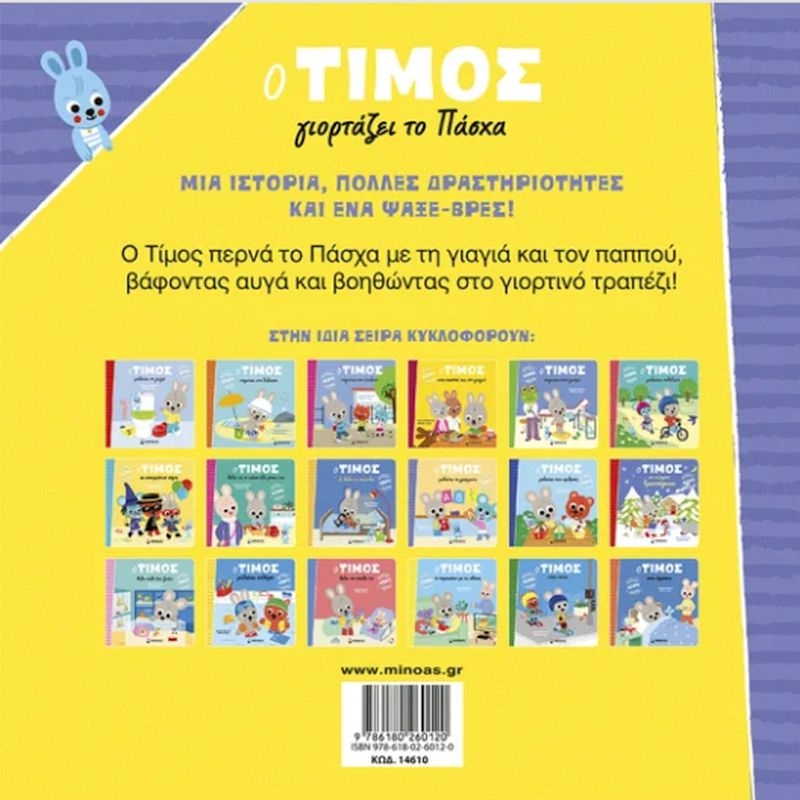Μια ιστορία, πολλές δραστηριότητες και ένα ψάξε-βρες! Ο Τίμος περνά το Πάσχα με τη γιαγιά και τον παππού, βάφοντας αυγά και βοηθώντας στο γιορτινό τραπέζι!