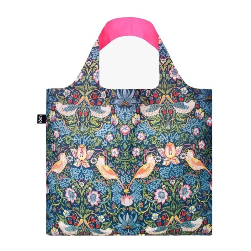 Ο πίνακας "Κλέφτης Φράουλας" (1883) του William Morris παρουσιάζει ένα ζωηρό μοτίβο με φράουλες και πουλιά, εμπνευσμένο από τα πουλιά που κλέβουν φρούτα στον κήπο του. Ο William Morris, πρωτοπόρος του βικτωριανού design, δημιούργησε πάνω από 50 ταπετσαρίες, πειραματιζόμενος με φυτικές βαφές για να αποτυπώσει την ομορφιά της φύσης με περίπλοκες λεπτομέρειες. Αυτή η ανακυκλωμένη τσάντα tote που απεικονίζει τον Κλέφτη Φράουλας είναι ένα αγαπημένο μπεστ σέλερ!