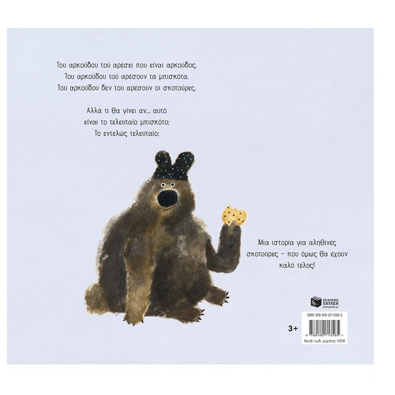 Η συνέχεια του βραβευμένου βιβλίου της Νατάλια Σαλοσβίλι Ο αρκούδος είναι μια αστεία και παρήγορη προσέγγιση στο πώς να αντιμετωπίζεις τη συνεχή ανησυχία. Με λίγη βοήθεια από τη φίλη του την πάπια, ο αρκούδος ανακαλύπτει ότι ακόμα και όταν οι μεγαλύτερες ανησυχίες του (σχετικές με τα μπισκότα!) πραγματοποιούνται, δεν είναι το τέλος του κόσμου. Στην αρχή, ο αρκούδος τρώει χαρούμενα το μπισκότο του, μέχρι που του περνάει μια σκέψη: τι θα γίνει αν είναι το τελευταίο μπισκότο; Όταν αυτό αποδεικνύεται αληθινό, ξεκινά για τα μαγαζιά – και οι ανησυχίες του αυξάνονται συνεχώς. Ανησυχεί μήπως χάσει το λεωφορείο… και φεύγει χωρίς αυτόν. Ανησυχεί ότι θα χαθεί… και χάνεται. Μέχρι να βρει την ουρά για τα μπισκότα, είναι στο τέλος. Και η χειρότερη ανησυχία του γίνεται πραγματικότητα. Το τελευταίο μπισκότο πηγαίνει… στην πάπια! Αλλά ακριβώς τη στιγμή που ο αρκούδος πιστεύει ότι οι χειρότεροι φόβοι του έχουν πραγματοποιηθεί, η πάπια τού δείχνει απαλά ότι οι ανησυχίες δεν χρειάζεται να καταλήγουν στην καταστροφή. Μοιράζοντας το μπισκότο της και υπενθυμίζοντας στον αρκούδο ότι το «τι θα γινόταν αν» μπορεί επίσης να οδηγήσει σε ένα ευτυχισμένο τέλος, η πάπια βοηθά τον φίλο της να καταλάβει ότι τα πράγματα συχνά εξελίσσονται καλύτερα από το αναμενόμενο. Με τις εκφραστικές, παιχνιδιάρικες εικόνες της Νατάλια Σαλοσβίλι και μια ιστορία που ισορροπεί το χιούμορ με τη ζεστασιά, το βιβλίο Οι σκοτούρες του αρκούδου αποτυπώνει την οικεία εμπειρία των παιδιών (και των ενηλίκων) των οποίων η φαντασία τρέχει μαζί τους. Τόσο διασκεδαστικό όσο και καθησυχαστικό, αυτό το εικονογραφημένο βιβλίο είναι το τέλειο εφαλτήριο για συζητήσεις σχετικά με το άγχος, την ανθεκτικότητα και τη φιλία. Είτε το μοιράζεστε στην ώρα του παραμυθιού, είτε το χρησιμοποιείτε στην τάξη είτε το χαρίζετε ως ένα στοχαστικό δώρο, το βιβλίο Οι σκοτούρες του αρκούδου είναι μια απαραίτητη προσθήκη στη βιβλιοθήκη κάθε παιδιού. Προσφέρει την υπενθύμιση ότι καμία ανησυχία δεν είναι πολύ μεγάλη όταν αντιμετωπίζεται από κοινού.