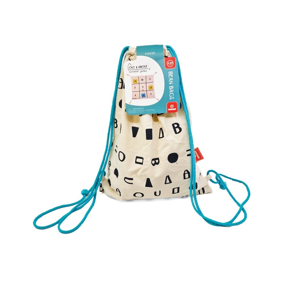 Περιλαμβάνει: 10 χρωματιστά σακιά φασολιών σε μπλε και κίτρινο χρώμα, υφασμάτινο ταμπλό και μια κομψή υφασμάτινη τσάντα