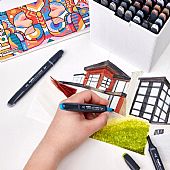 Μαρκαδόρος διπλής μύτης με βάση το οινόπνευμα με πλακέ μύτη chisel και πινέλο. Τα υψηλής ποιότητας μελάνια του σε 80 χρώματα επιτρέπουν την εύκολη ανάμειξη για επαγγελματικό αποτέλεσμα. Το εργονομικό σχήμα εξασφαλίζει άνετο κράτημα για σχέδιο και χρωματισμό.