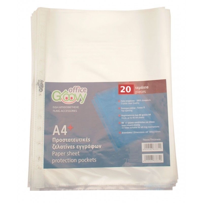 Ζελατίνες αρχειοθέτησης Α4 - Διάφανη (20τμχ./0.04mm) - Groovy Office