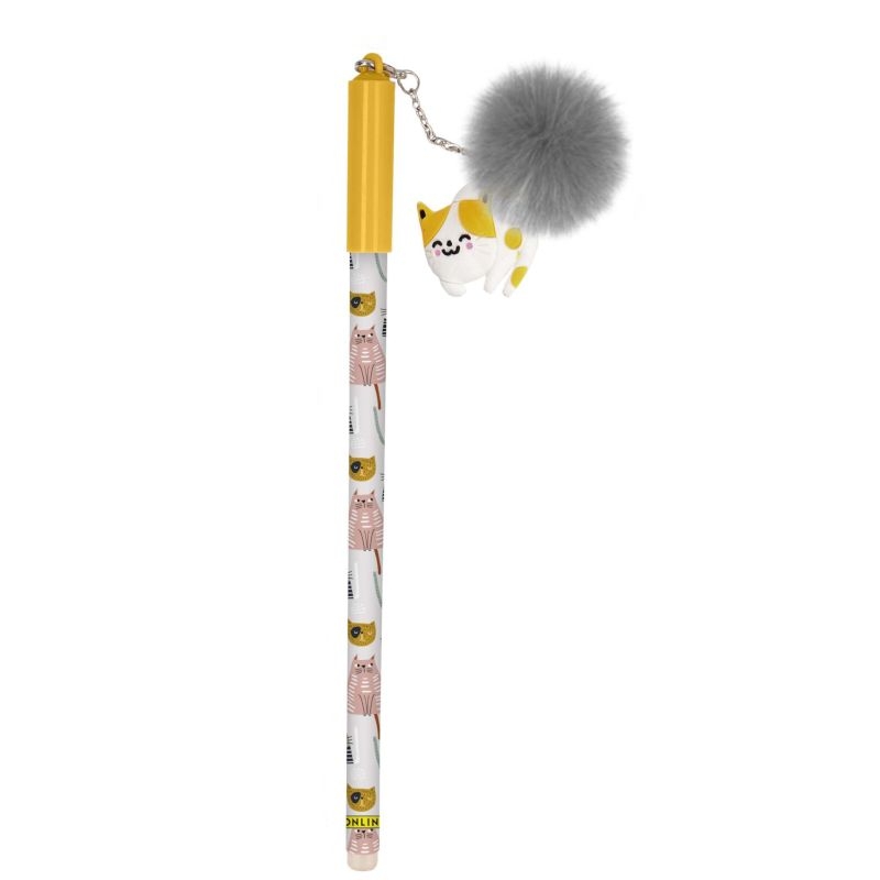 Στυλό που σβήνει από την Online MagiXX. Το καπάκι το στολίζει ένα χαριτωμένο ζωάκι σε σχέδιο μία γάτα με πομ πομ. Μπορείτε να εξαλείψετε τα λάθη σας και να συνεχίσετε να γράφετε, σβήνοντας με την ειδική γόμα που διαθέτει στο επάνω μέρος του.