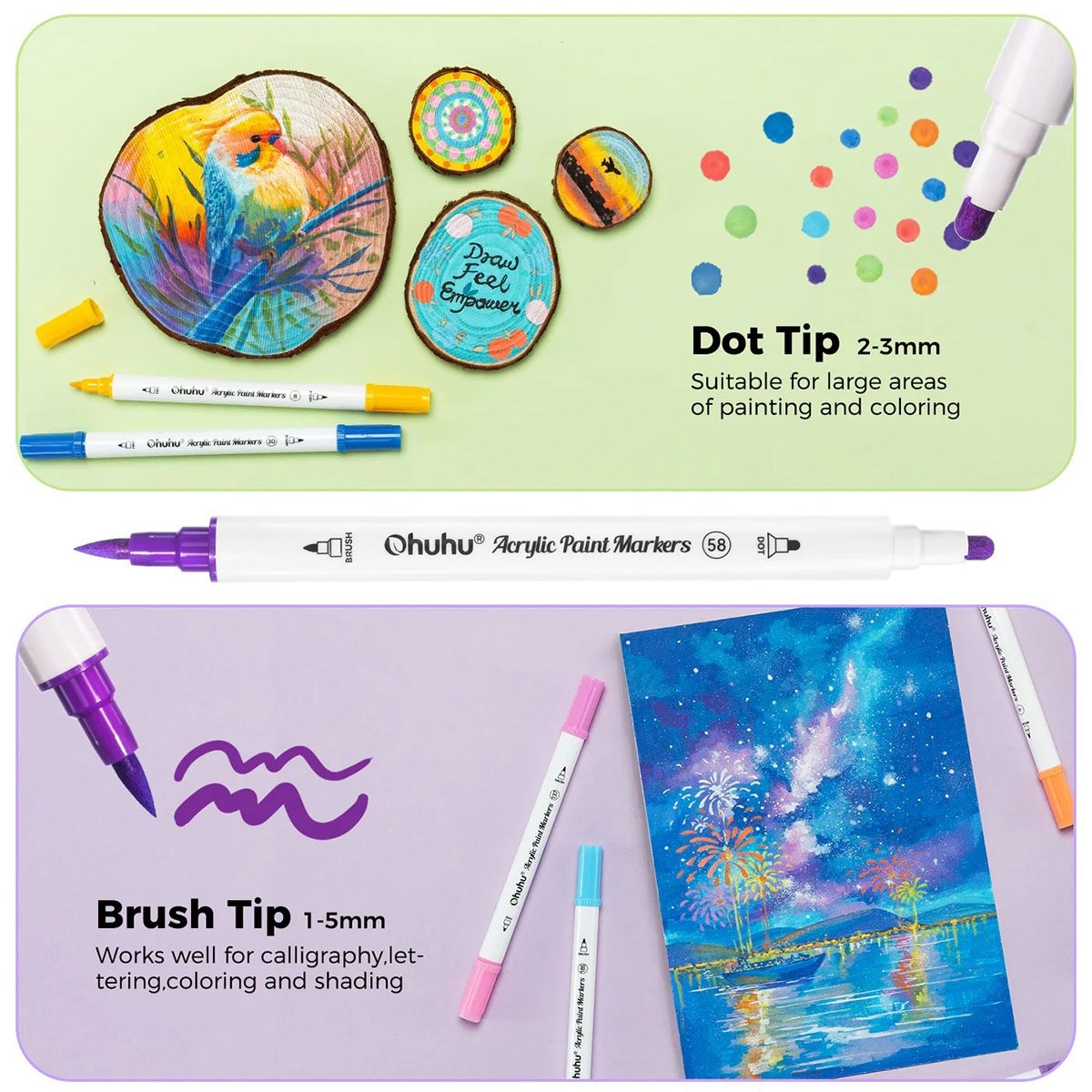 Art Markers: Σετ Ακρυλικών Μαρκαδόρων - Brush & Dot (72 Χρωμάτων) - Ohuhu