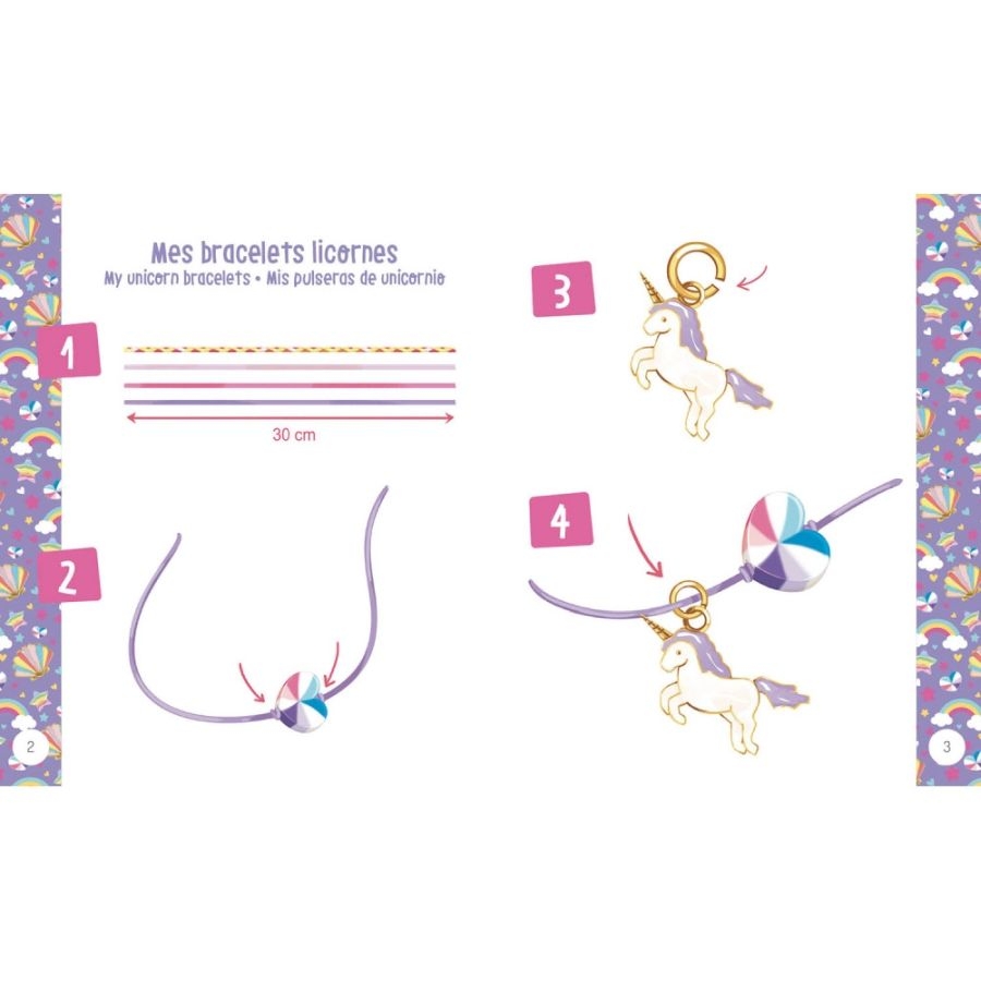 Γνωρίστε την ικανοποίηση και την απόλαυση του να φοράτε ένα κόσμημα που έχετε φτιάξει μόνοι σας! Η σειρά «Φτιάχνω Κοσμήματα», της αγαπημένης μας γαλλικής εταιρίας Auzou, διαθέτει μεγάλη γκάμα από πρωτότυπα, μοντέρνα και δημιουργικά κιτ κατασκευής κοσμημάτων. Βραχιόλια, κολιέ, δαχτυλίδια και πολλά άλλα, ανακαλύψτε τα όλα και δημιουργήστε τις πιο μοναδικές και καταπληκτικές συλλογές αξεσουάρ και κοσμημάτων! Το συγκεκριμένο κιτ περιλαμβάνει όλα όσα θα χρειαστείτε για να φτιάξετε 5 υπέροχα βραχιόλια με μονόκερους για εσάς ή τη καλύτερη φίλη σας.