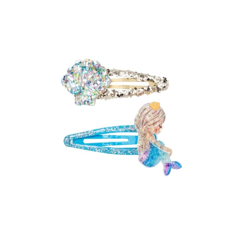 Τσιμπιδάκια μαλλιών διακοσμημένα με αστραφτερό κοχύλι και χαριτωμένη γοργόνα, που προσφέρουν μια μαγική και καλοκαιρινή αίσθηση σε κάθε χτένισμα. Ιδανικά για καθημερινές εμφανίσεις ή ιδιαίτερες στιγμές, κρατούν τα μαλλιά σταθερά ενώ λειτουργούν ταυτόχρονα ως ένα παιχνιδιάρικο και ξεχωριστό αξεσουάρ.